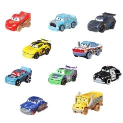 Vivez des aventures palpitantes avec ces coffrets de mini-véhicules très variés inspirés du film Cars de Disney Pixar. Chaque véhicule comporte une carrosserie en métal, de véritables roues et des détails authentiques. Collectionnez tous les coffrets de 10 mini-véhicules pour recréer les scènes de Cars les plus folles et les plus drôles ! Chaque coffret de mini-véhicules inclut un véhicule inédit, pour en faire une collection dexception !