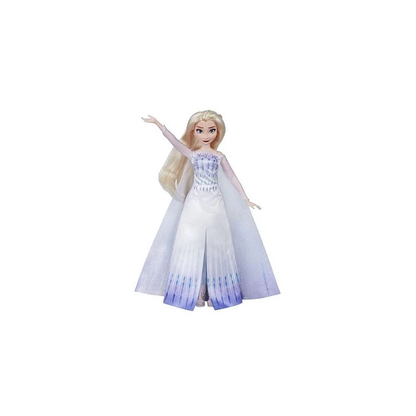| Plus produit | Disney La Reine des Neiges 2 – Poupée d\'Elsa chantante – version française\n\nMagnifique poupée qui chante en français.\n\n7 points d\'articulation\n\n26 cm\n\n3 LR44 incluses |
