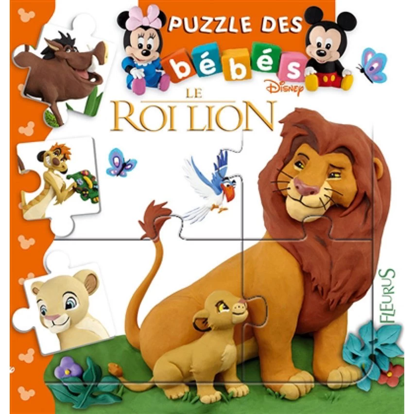 Un tout-carton, avec quatre puzzles encastrés de quatre à six pièces, pour jouer avec Simba et ses amis.